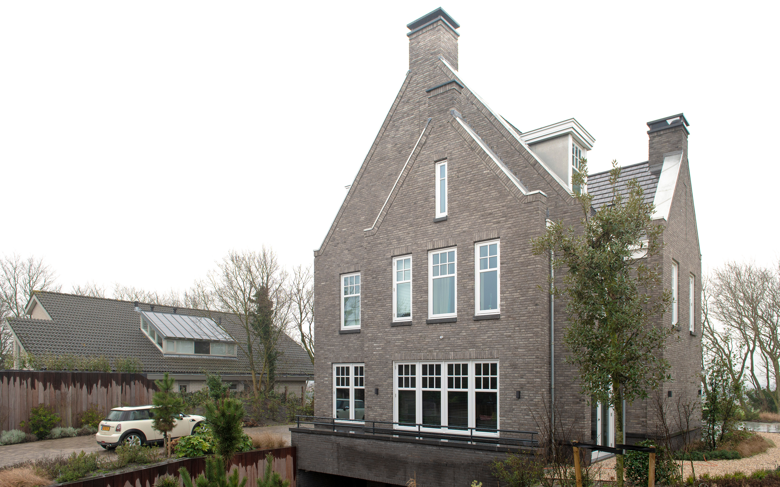 balans tussen moderne en traditionele detailleringIn deze stijlvolle nieuwbouwwoning is gekozen voor houten kozijnen in een diepe grijstint, volledig op maat gemaakt en afgestemd op de klassieke gevelarchitectuur. De woning combineert traditionele vormen met een moderne detaillering, en juist dat maakt deze combinatie zo krachtig. De openslaande tuindeuren zorgen voor veel licht en verbinding met buiten, terwijl de kozijnverdelingen zorgen voor een statige, rustige uitstraling. Het houtwerk is duurzaam afgewerkt en past perfect binnen de stijl van deze moderne klassieker.