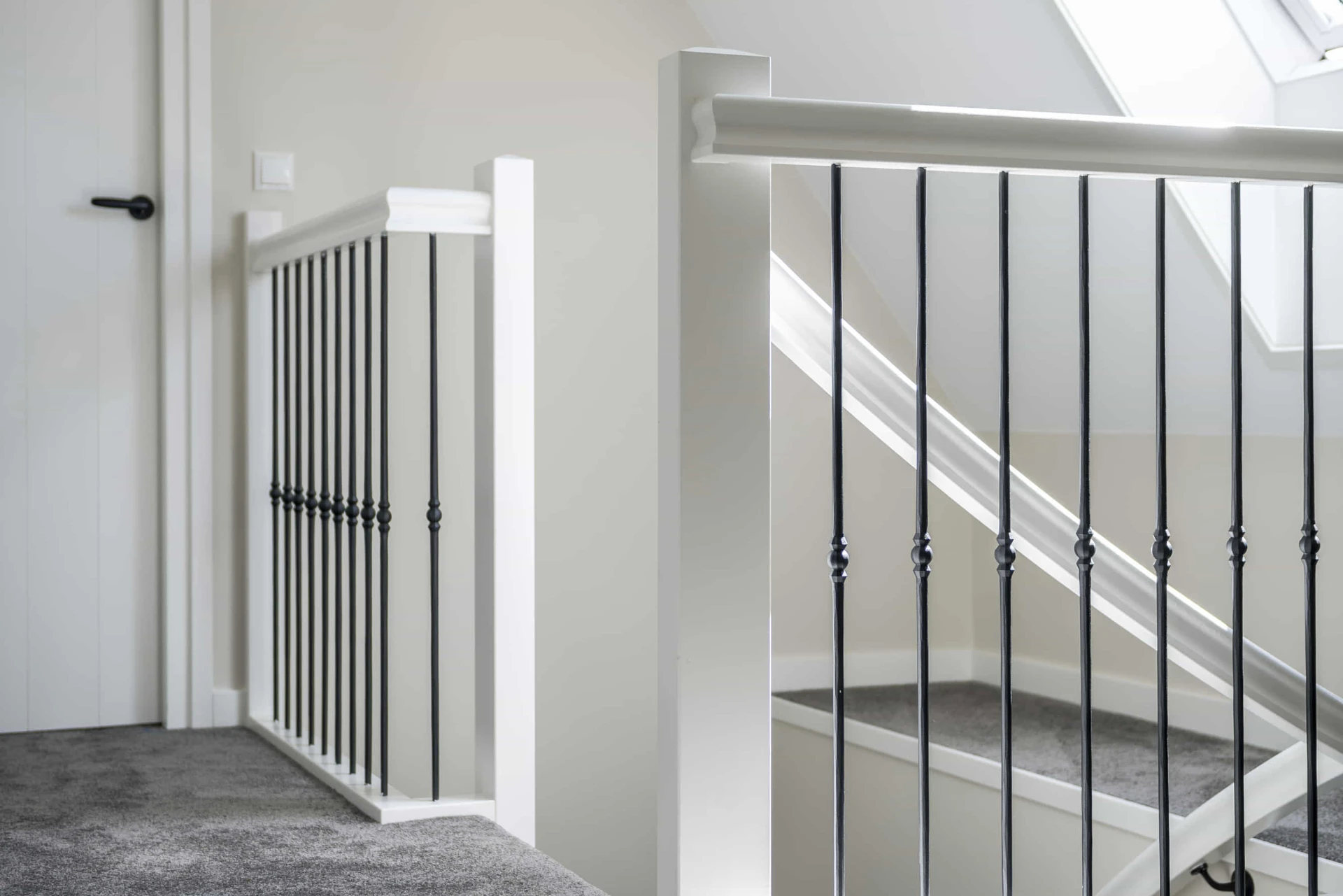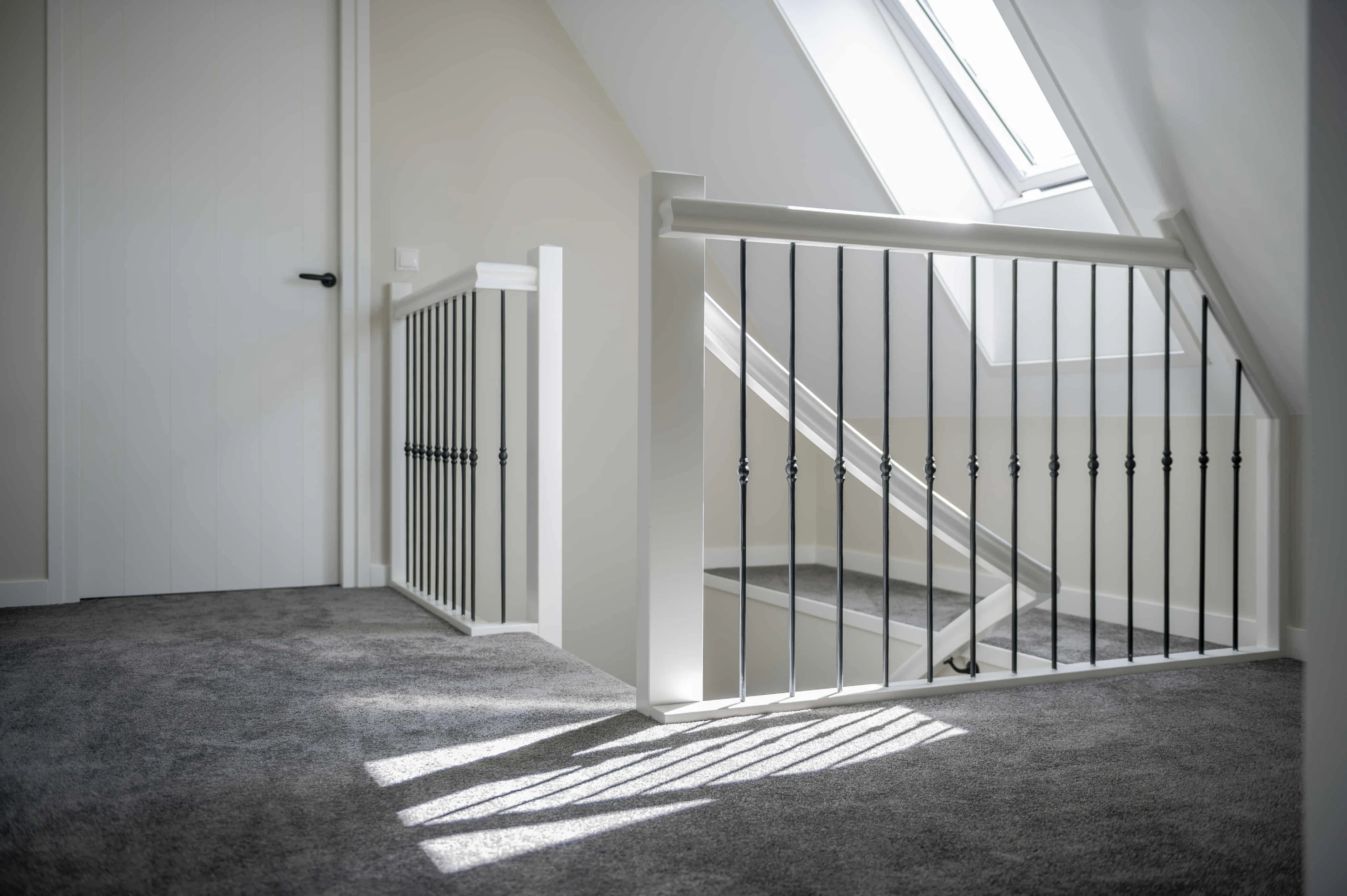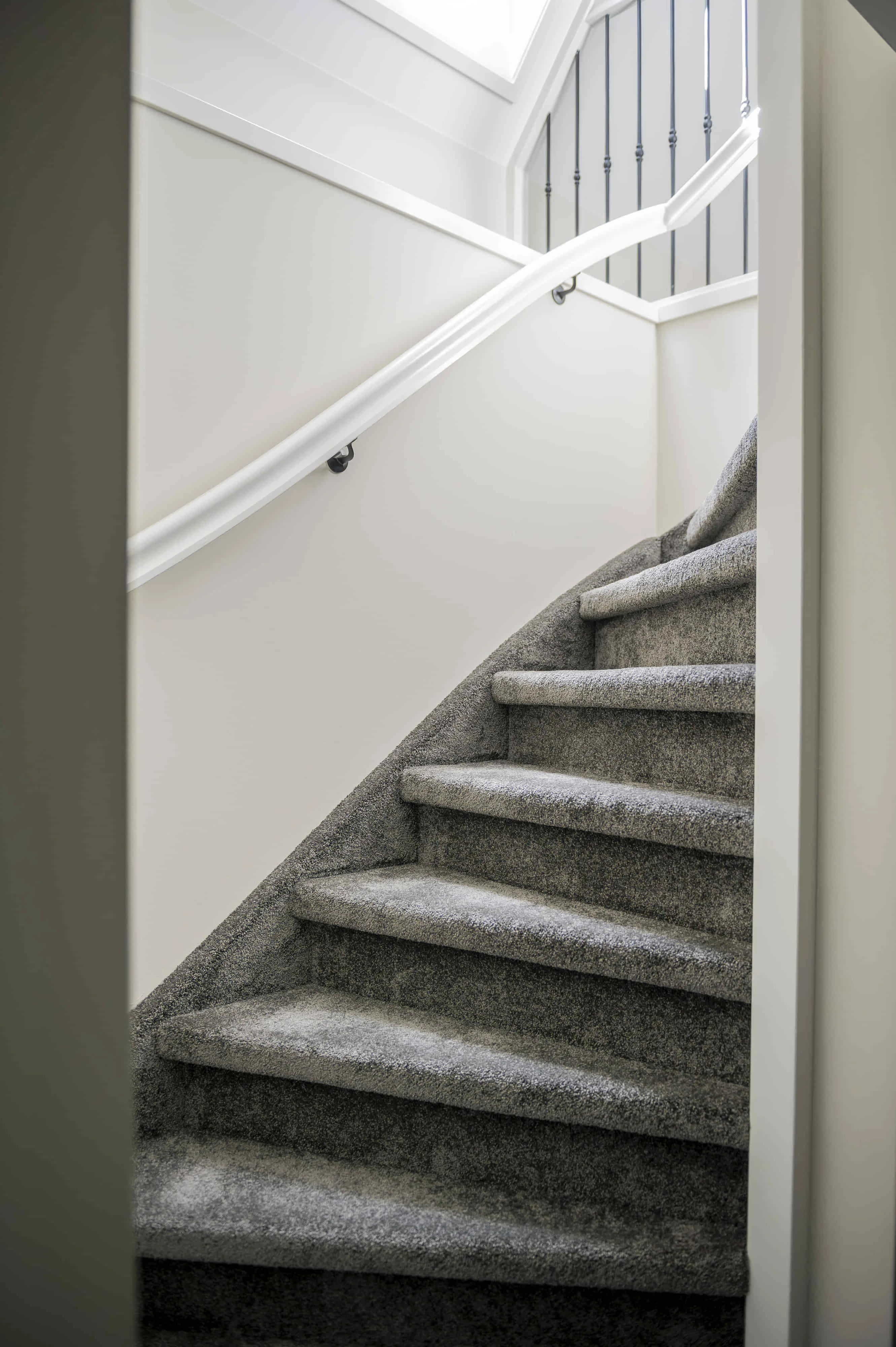 Een trap met tapijt bekleed volgens de wensen van de klant, met een zachte, slijtvast en onderhoudsvriendelijk oppervlak.